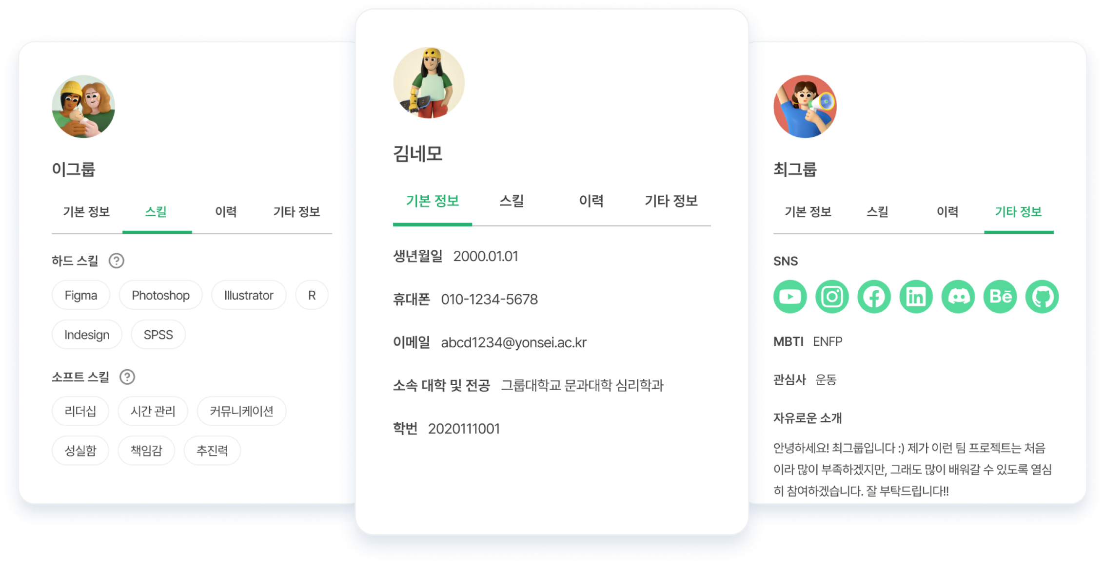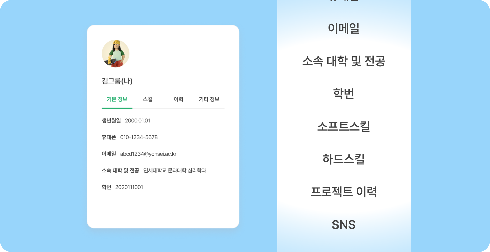모든 자기소개 정보를 하나의 프로필로 공유해보세요.